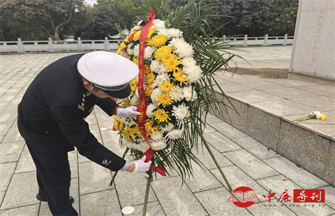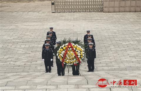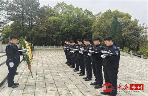 活动正式开始,全场寂静无声,全体民辅警向烈士纪念碑默哀三分钟,低头静立之中,饱含着对先烈的深切缅怀与无限敬仰。默哀仪式结束后,民辅警代表缓步走上前,将花圈郑重敬献于烈士纪念碑前,大队领导缓步上前,小心翼翼地整理花圈缎带,寄托对革命先烈的深切哀思。