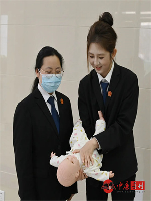 商志刚团队采用“理论讲解+实操演练”相结合的方式,围绕心肺复苏术(CPR)和海姆立克急救法,详细讲解了晕厥、窒息、异物卡喉等突发状况的早期识别与应对策略。“判断意识要轻拍重唤,同时大声呼救。”医师借助模拟道具,逐一演示胸外按压的节奏与深度,以及人工呼吸时的气道开放要领,生动拆解了海姆立克急救法的动作技巧,并邀请干警上台实操,手把手纠正操作偏差。