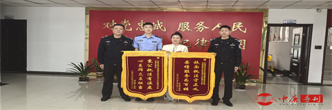 4月15日,当事人专程送来两面锦旗,以“秉公执法有温度 心系群众显担当”“铁面执法守正义 柔情服务为百姓”,对民警坚守岗位、为民服务的举动表示衷心感谢。