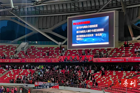 在全力为“鲁超”赛事保驾护航的同时,枣庄市公安局刑侦支队、治安支队民警警种联动、创新宣传形式,在赛场入口处精心设置了宣讲摊位,民警用通俗易懂的语言讲解刷单返利、虚假投资理财、跨境赌博等常见套路和陷阱;比赛间隙,还通过赛场大屏幕播放了枣庄公安防范电信网络诈骗、打击治理跨境赌博系列短视频、海报,将赛场瞬间变成了安全防范知识的“主阵地”,为这场体育赛事增添了一道别样的“安全防护网”。