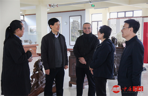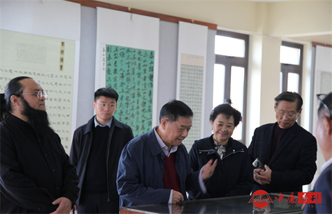 与会领导、嘉宾和全市农工党艺术家逐一观瞻了展出150多幅书法、山水画;细致观摩了馆内全国各地艺术家、文物收藏家送展的不同历史时期各类古陶、古瓷、古玉、奇石等历史文物。