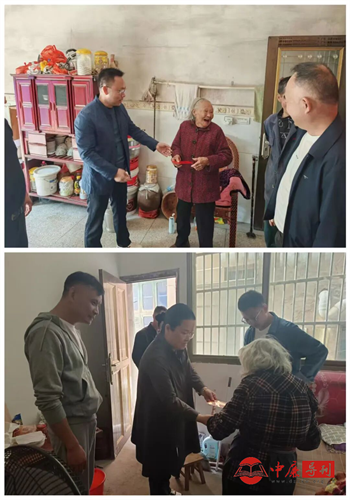 党委书记程志平,党委副书记、镇长谭晚梅先后来到桥棚村、黄茅坞村等地走访高龄老人,在走访过程中与老人促膝长谈,详细了解她们的生活和健康状况,并要求各村居和相关部门要及时关注老人需求,把老年人的冷暖放在心上,不断提高服务质量,随后,为老人们送上慰问礼金,并致以节日的祝福和诚挚的问候。